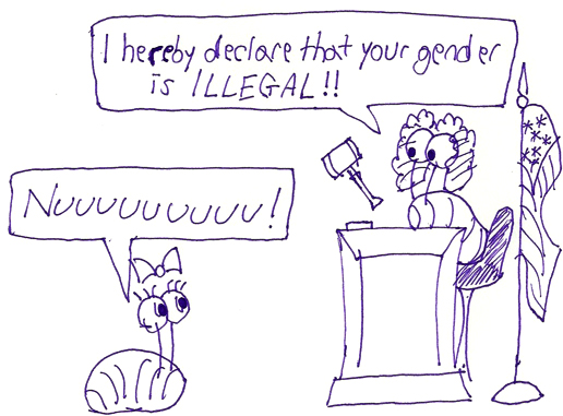 I’ve made precious little reference to the law as of yet, save for vague gestures towards contradictory rules regarding identity documents. There is a reason for this, however. All I’ve discussed hitherto amounts to the basis for what law does exist, and what legal reasoning has been used in the oppression of transgender people through juridical mechanisms.